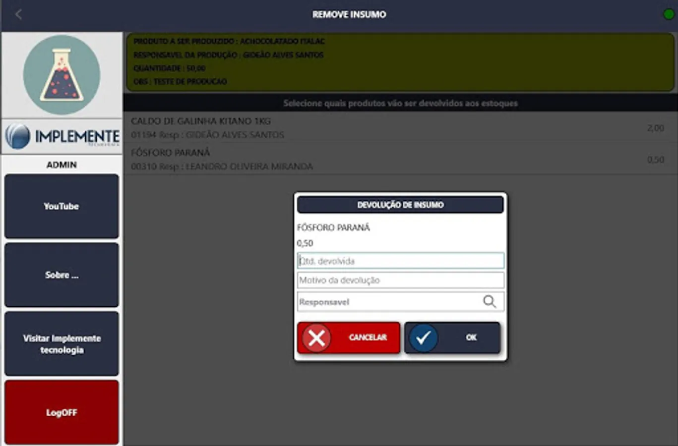 You who already use our system in your cafeteria, restaurant and bakery and need those responsible for production to have a quick and practical way to launch spent inputs, waste, returns to stock and etc., you can use this app for that.