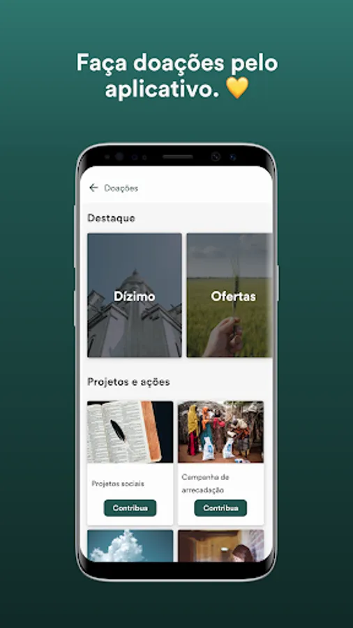 💛 Donate or contribute to the church directly through the app via credit card or boleto.