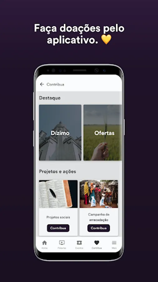 💛 Donate or contribute to the church directly through the app via credit card or bank slip.