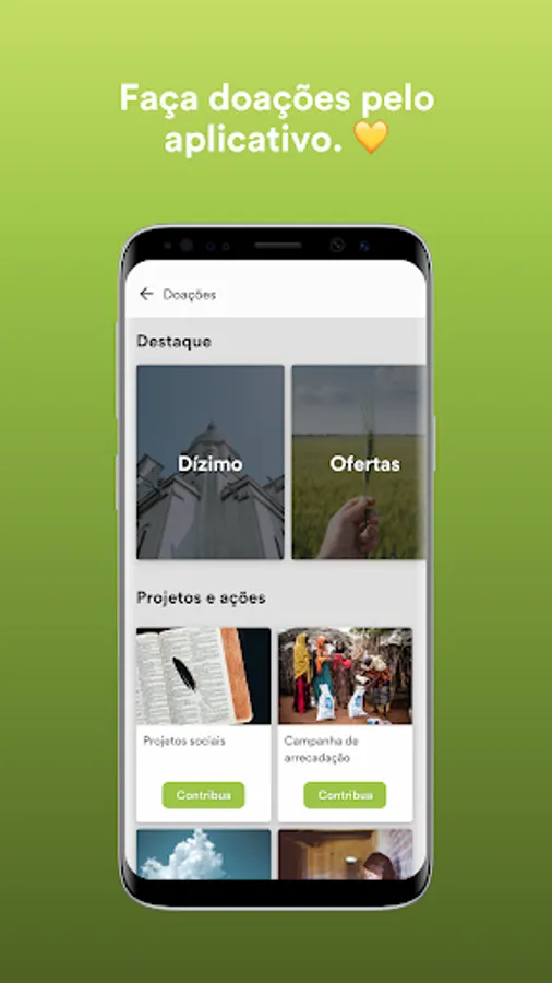 💛 Donate or contribute to the church directly through the app via credit card or boleto.