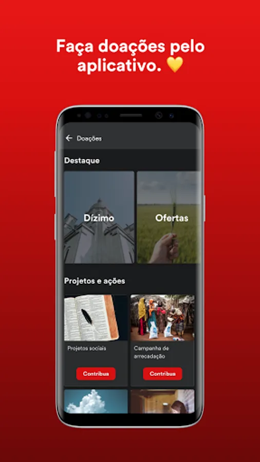 💛 Donate or contribute to the church directly through the app via credit card or boleto.