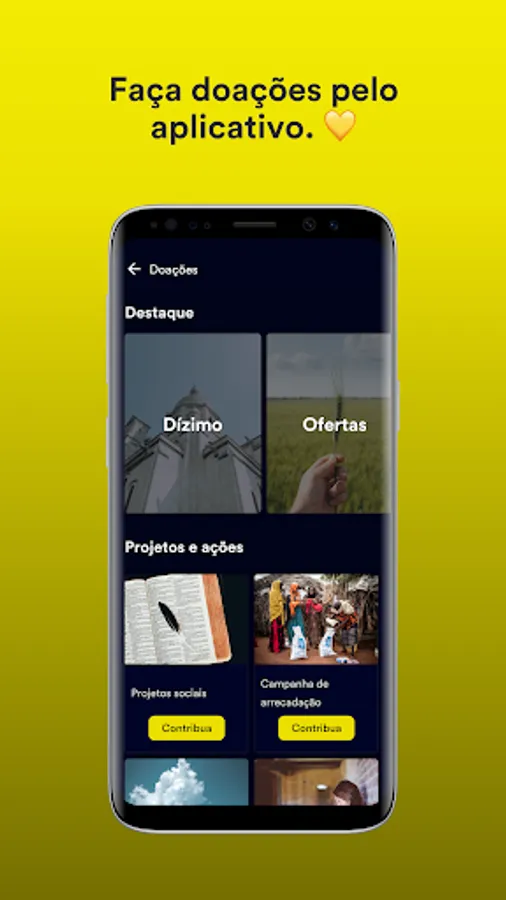 💛 Donate or contribute to the church directly through the app via credit card or boleto.