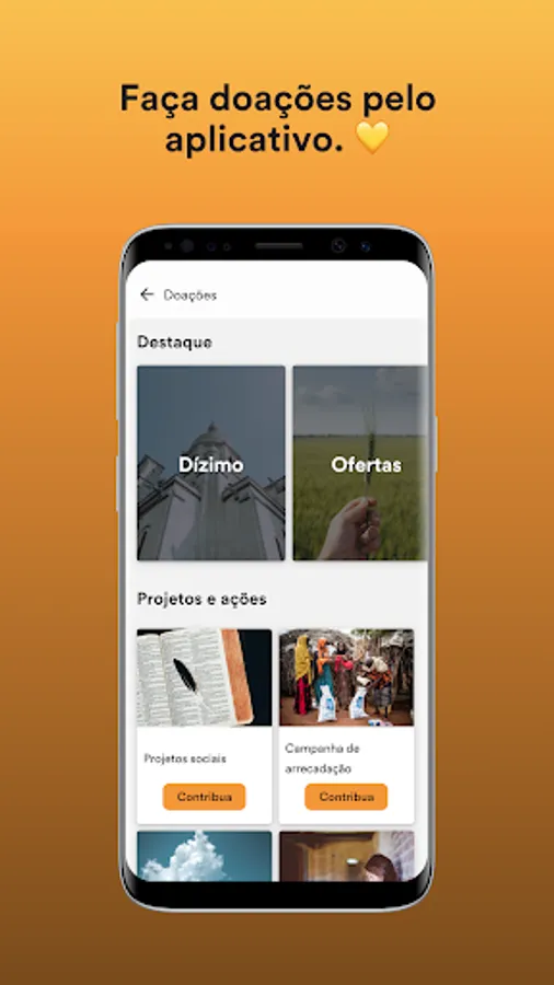 💛 Donate or contribute to the church directly through the app via credit card or boleto.