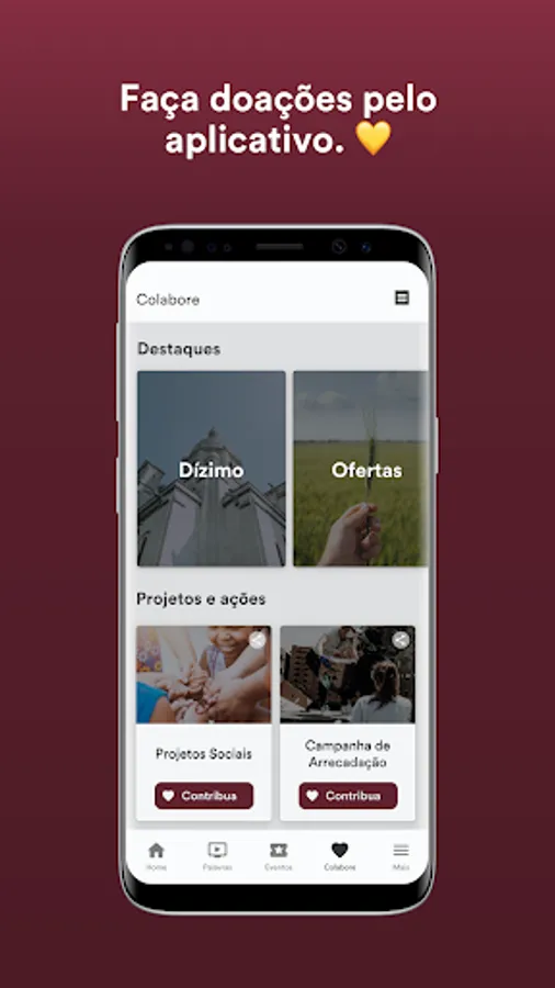 💛 Donate or contribute to the church directly through the app via credit card or billet.