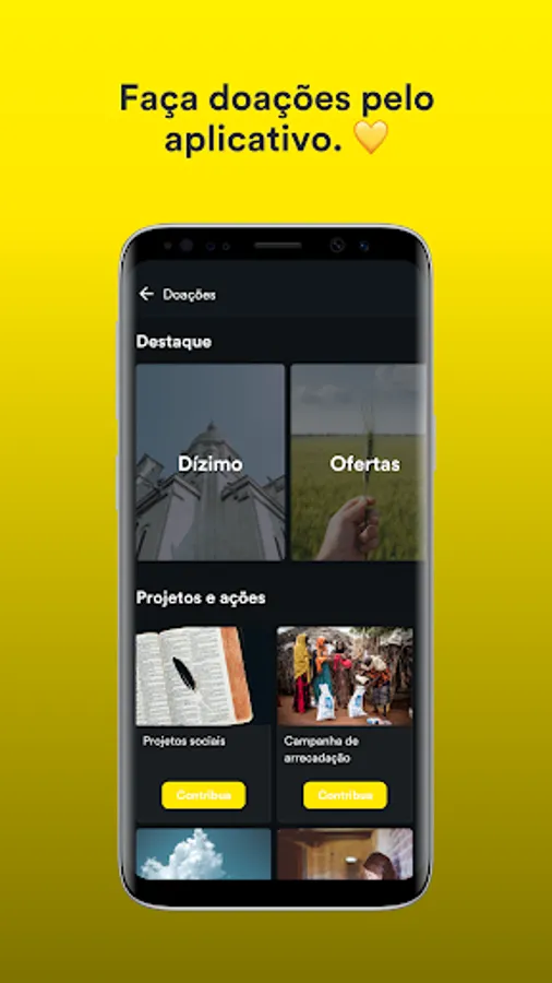 💛 Donate or contribute to the church directly through the app via credit card or boleto.