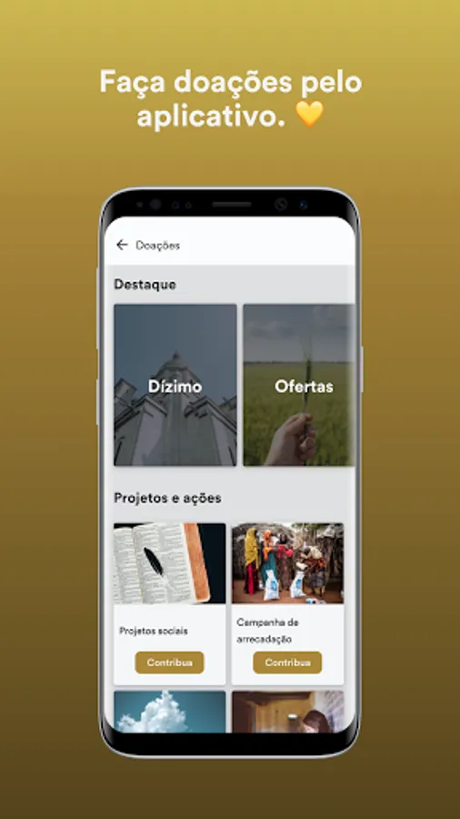 💛 Donate or contribute to the church directly through the app via credit card or boleto.