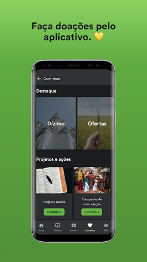 💛 Donate or contribute to the church directly through the app via credit card or boleto.
