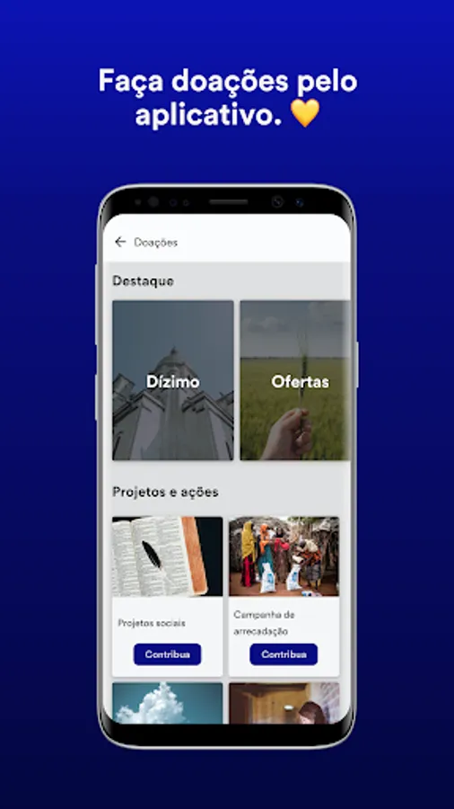 💛 Donate or contribute to the church directly through the app via credit card or boleto.
