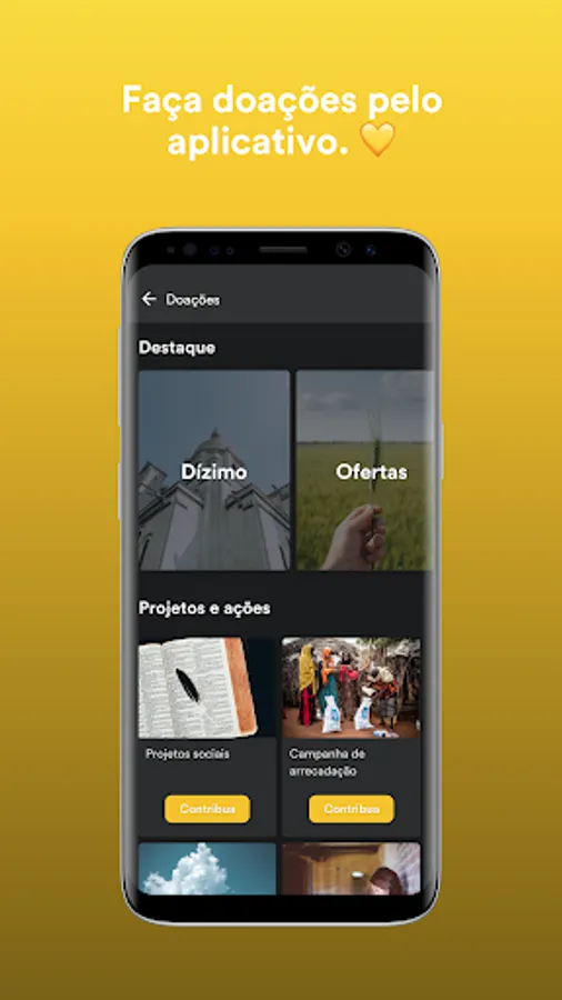 💛 Donate or contribute to the church directly through the app via credit card or boleto.