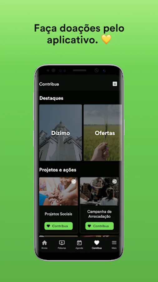 đ Donate or contribute to the church directly through the app via credit card or bank slip.