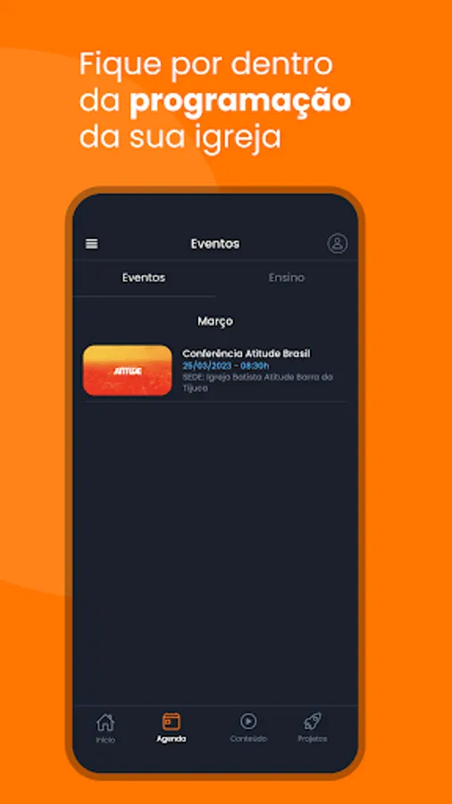 Find everything you need to build your life in God through the IBAtitude App of Attitude Baptist Church. In it you have the church schedule, devotionals, testimonies of miracles, ministries, access online services, register to find a cell and much more!
