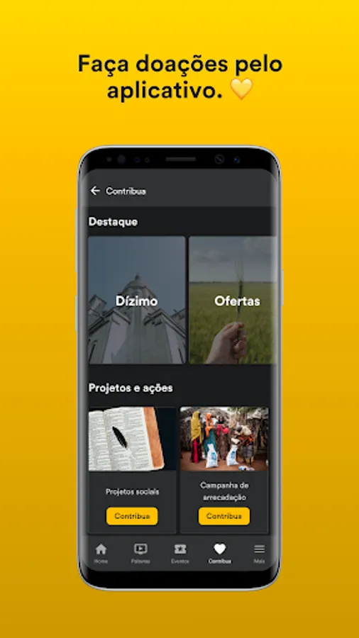 💛 Donate or contribute to the church directly through the app via credit card or bank slip.