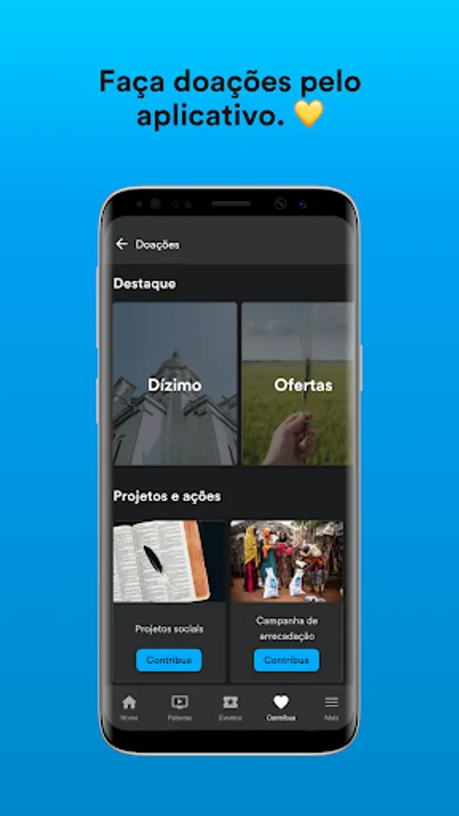 💛 Donate or contribute to the church directly through the app via credit card or bank slip.