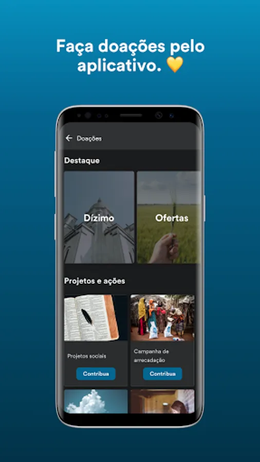 💛 Donate or contribute to the church directly through the app via credit card or boleto.