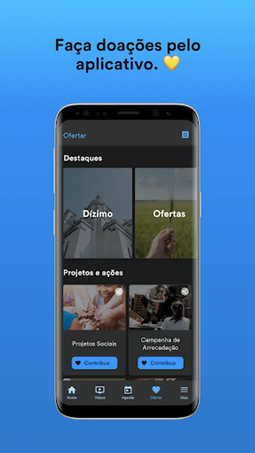 💛 Donate or contribute to the church directly through the app via credit card or bank slip.