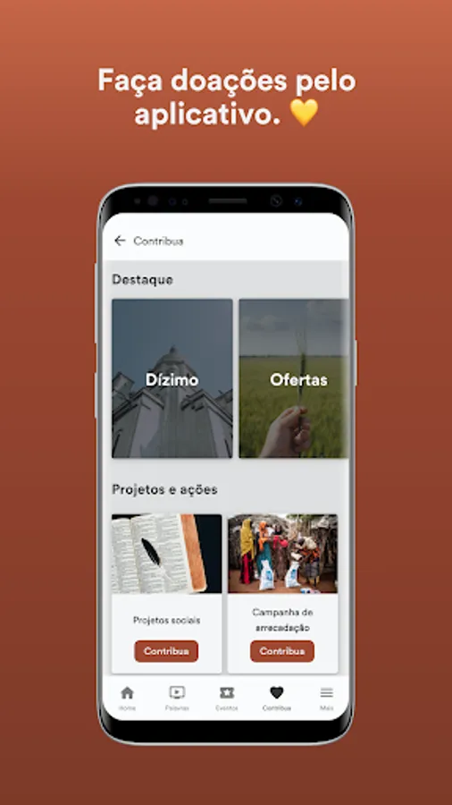 💛 Donate or contribute to the church directly through the app via credit card or bank slip.