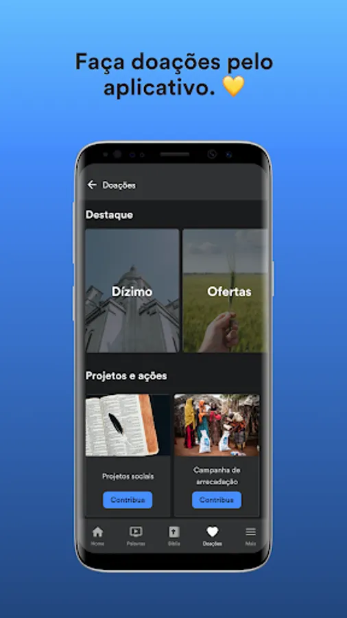 💛 Donate or contribute to the church directly through the app via credit card or billet.