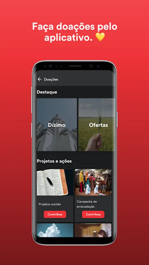 💛 Donate or contribute to the church directly through the app via credit card or boleto.