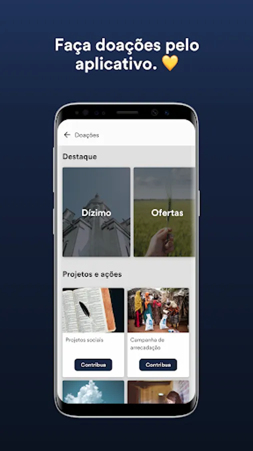 💛 Donate or contribute to the church directly through the app via credit card or boleto.