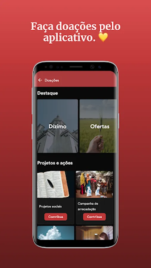 💛 Donate or contribute to the church directly through the app via credit card or boleto.