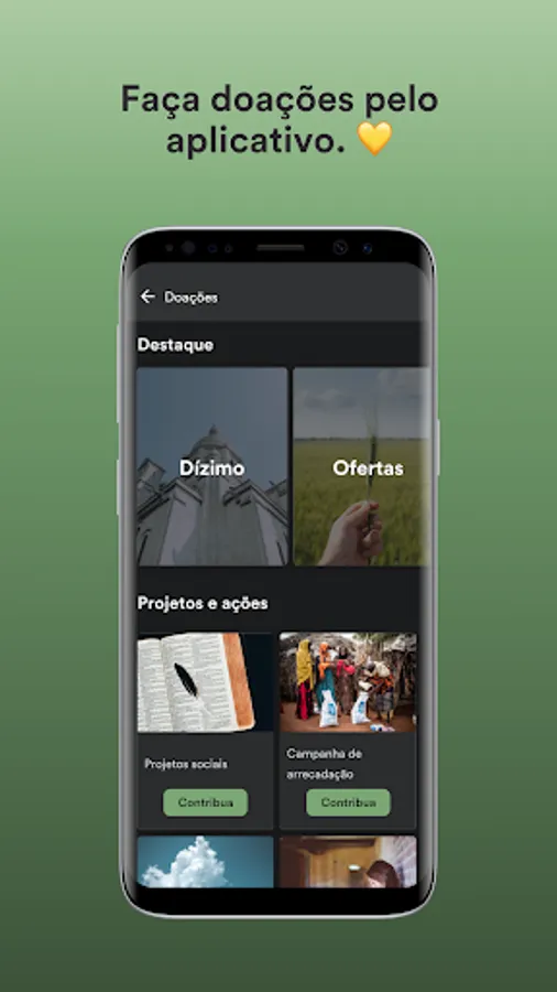 💛 Donate or contribute to the church directly through the app via credit card or boleto.