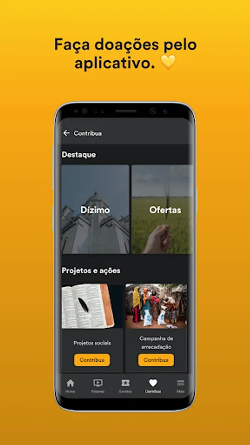 💛 Donate or contribute to the church directly through the app via credit card or bank slip.
