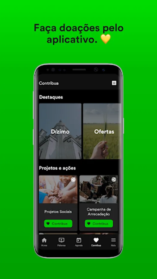 đ Donate or contribute to the church directly through the app via credit card or boleto.