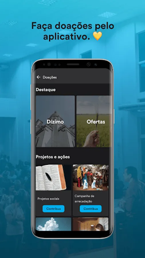 💛 Donate or contribute to the church directly through the app via credit card or boleto.