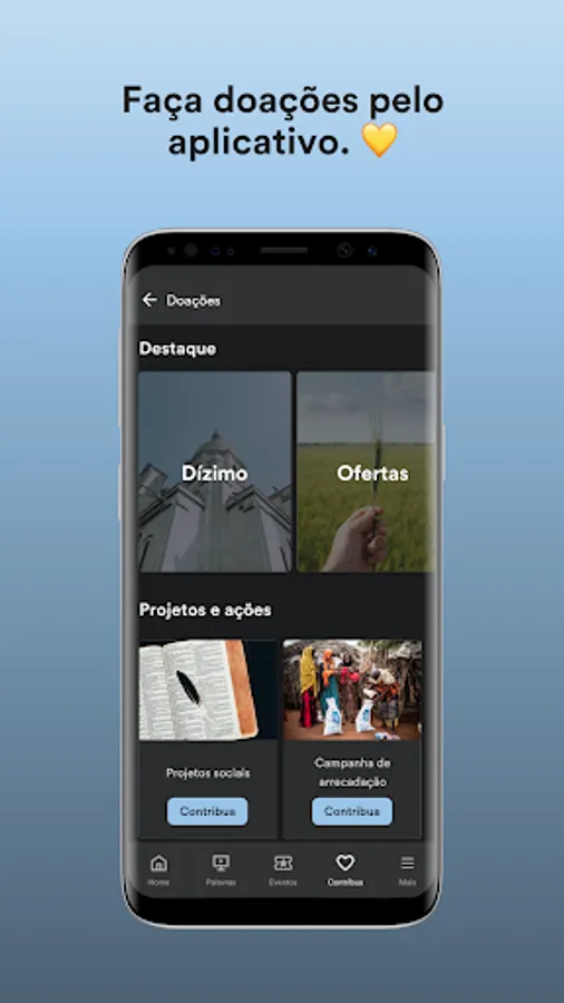 💛 Donate or contribute to the church directly through the app via credit card or billet.