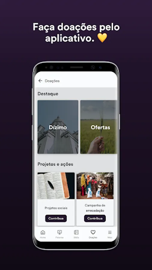 💛 Donate or contribute to the church directly through the app via credit card or billet.