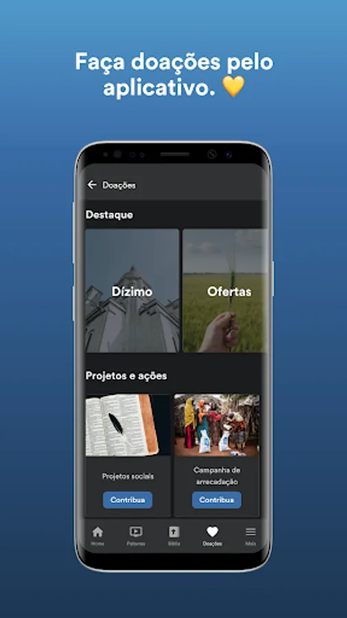 💛 Donate or contribute to the church directly through the app via credit card or bank slip.