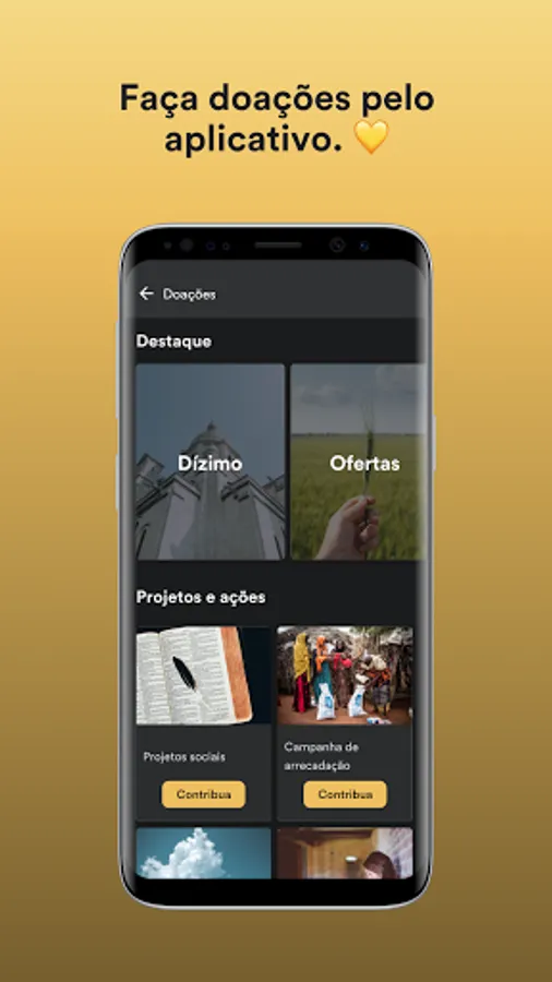 💛 Donate or contribute to the church directly through the app via credit card or boleto.