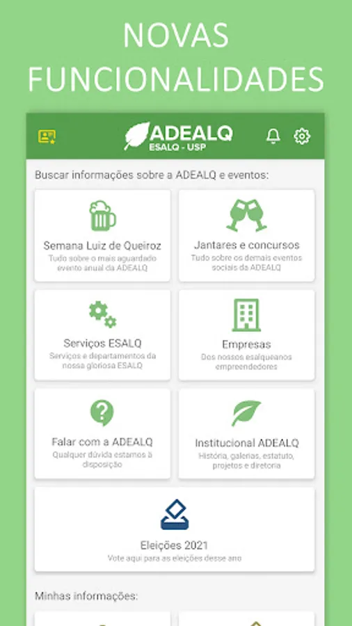 With it, you alumni will have access to the main information available on the ADEALQ ESALQUEANOS portal, added to the facilities of a smartphone application.