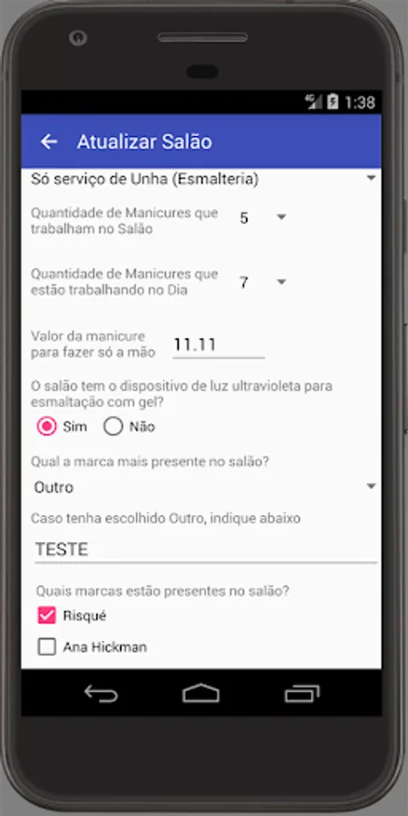Application that will be used by promoters team to visit the salons and collection of information relating to products Risque
