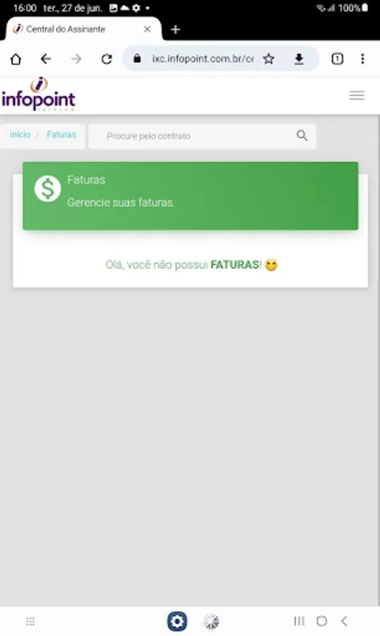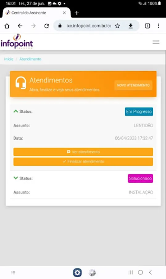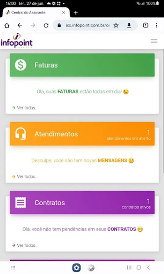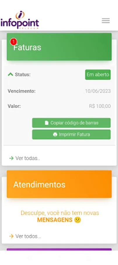 The subscriber center is a differential for InfoPoint Telecom customers. Our center is practical and you can access your bank slips and account information right from your home. You can also access your plan, data consumption and a lot of information you might need. We are always bringing the best to all of our customers. Join now and have full control.