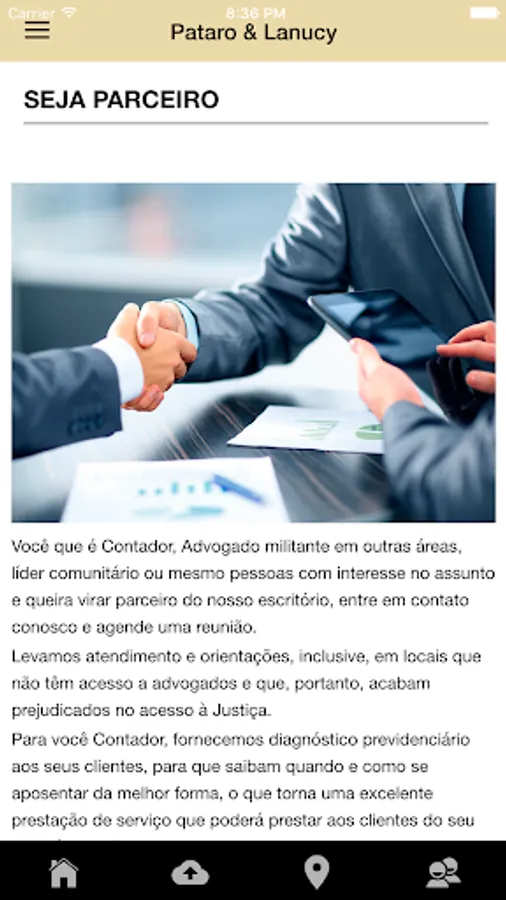 Through our application the user has several features to facilitate access to information and communication with our offices.