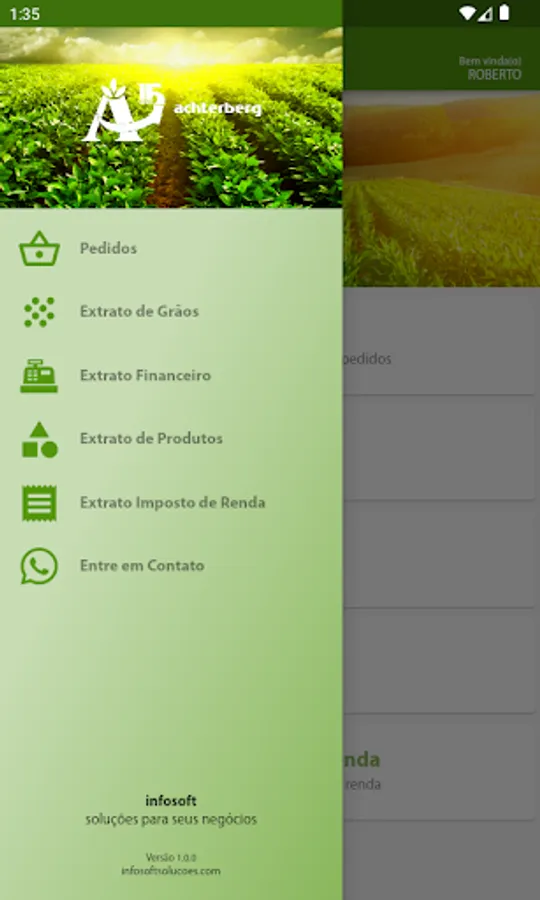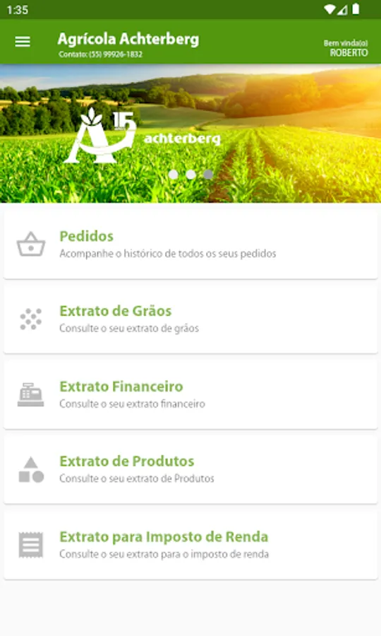 With the Achterberg APP you have information about: orders, grain deposit, financial statement, 2nd life of invoices, 2nd life of bank slip, tax statement among other features.