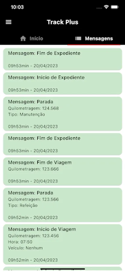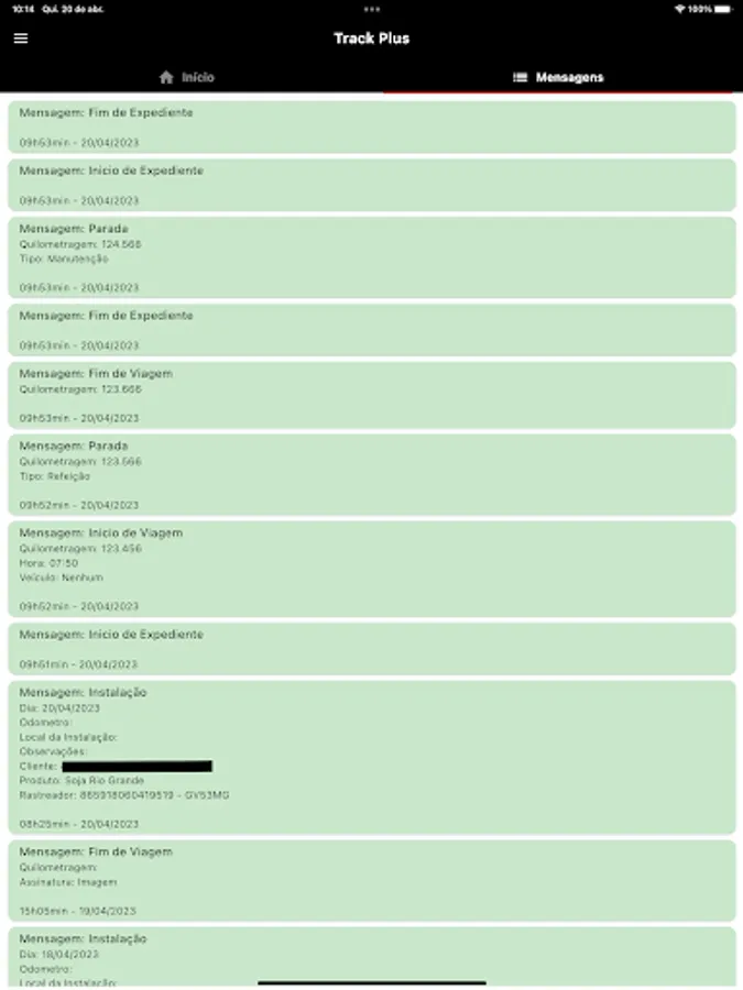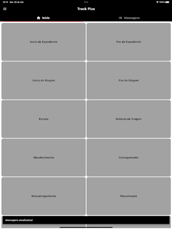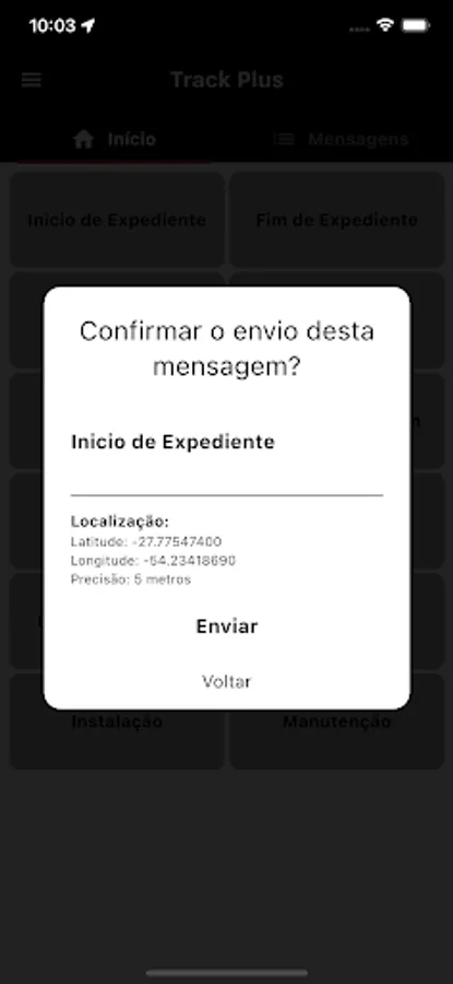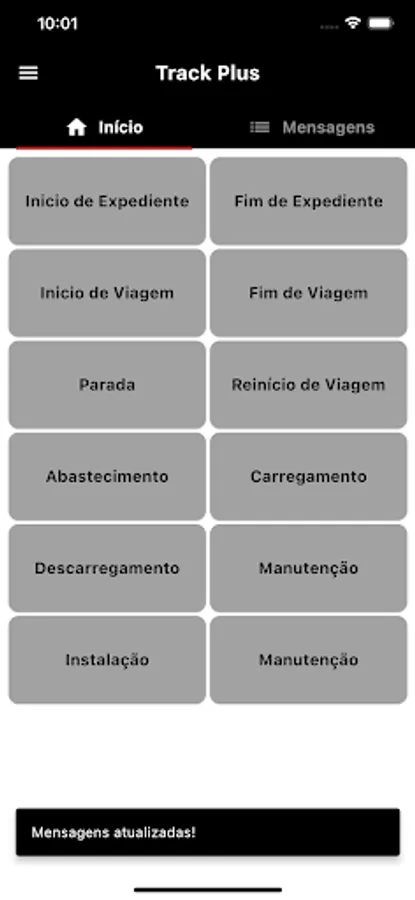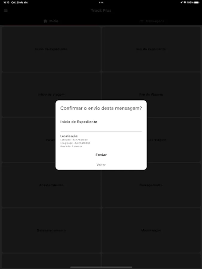 Track Plus' main function is to inform the status of some service, for example, start of trip, cargo collected, installation completed, stop, etc.