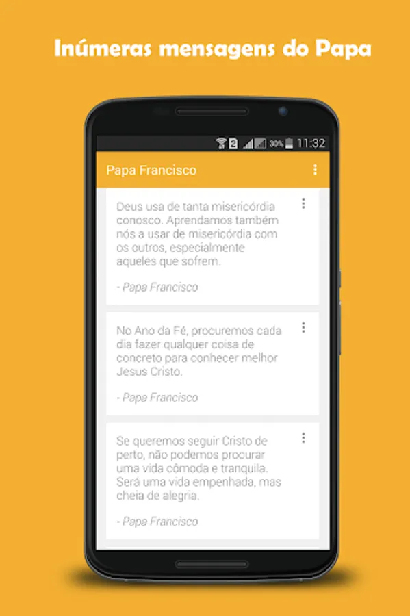 Phrases of the Pope Francis PRO is an application that shows the messages and statements of the Holy Father to the Catholics. Follow the path of His Holiness to make the world a better place for everyone.