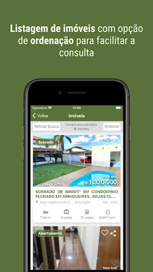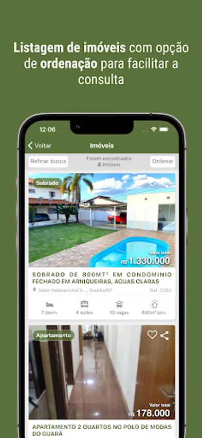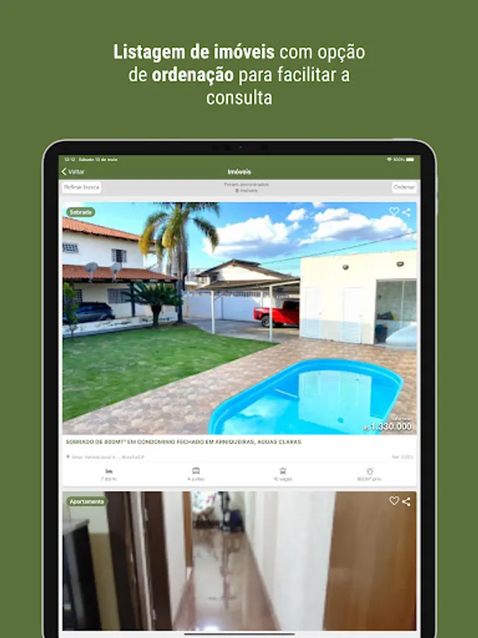 * Listing of properties with ordering option for easy consultation;