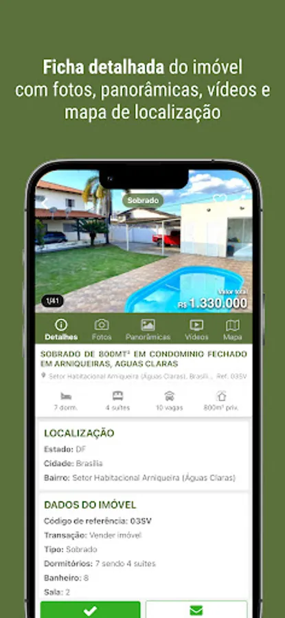 * Detailed information about the property, photos, panoramic views, videos and location map;
