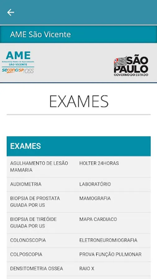 Sao Paulo. Activities contracted at AME São Vicente include consultations in the various specialties