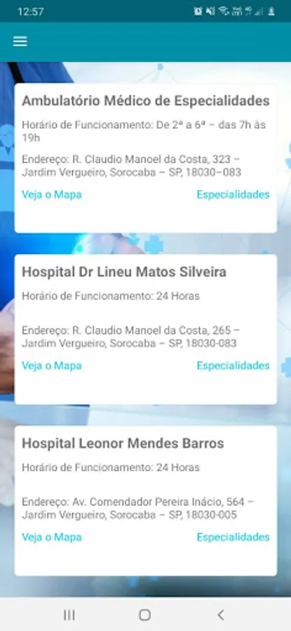 Assistance activities are carried out in three buildings: Hospital Dr. Lineu Mattos da Silveira, Hospital Leonor Mendes de Barros and Specialties Clinic Dr. Nelson da Costa Chaves.