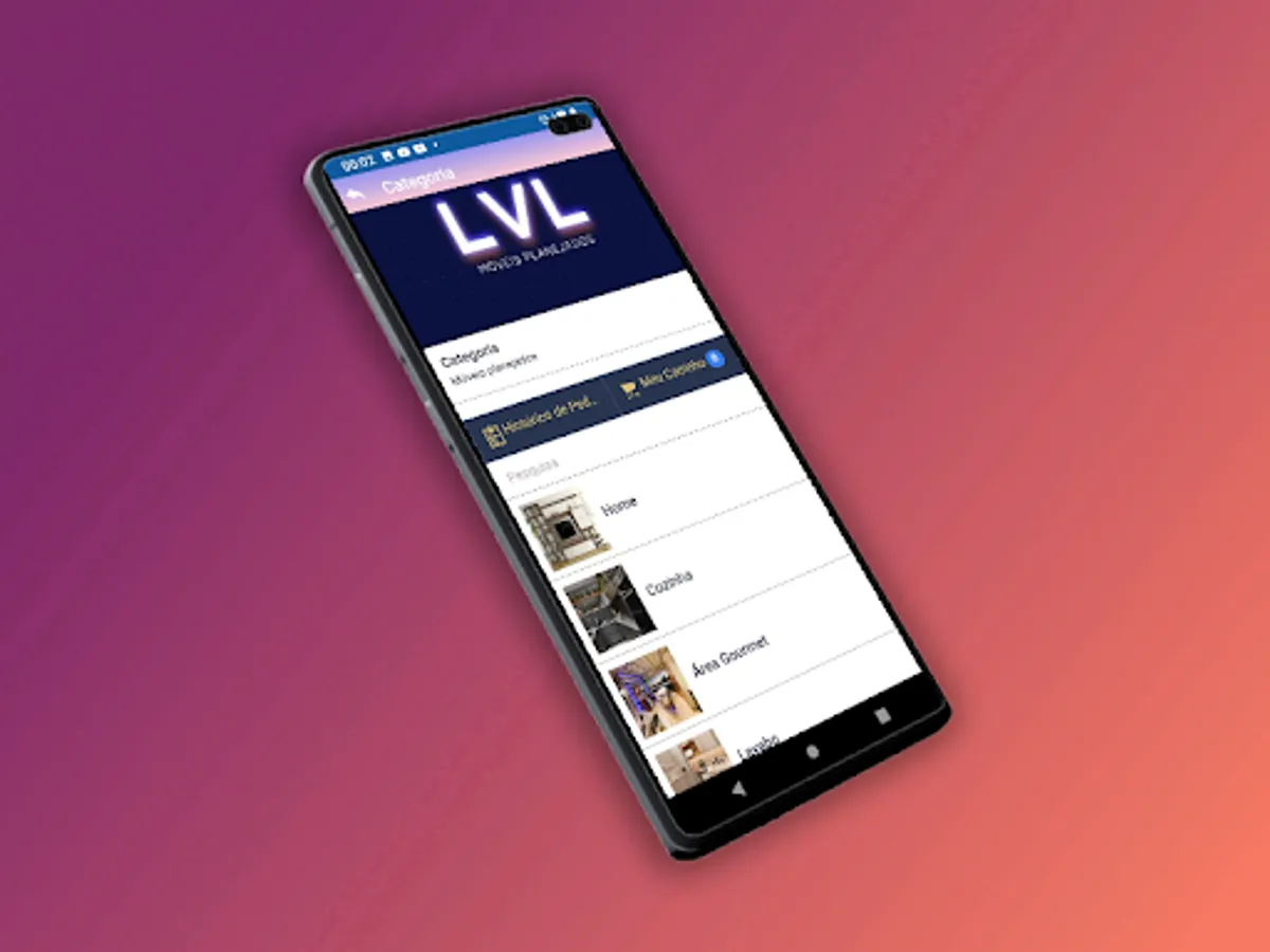 Note: The LVL Móveis Planejados app requires an internet connection to access the full catalog and customization features.