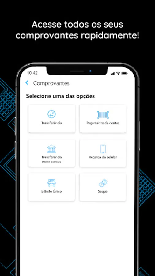 We invest a lot of knowledge and technology to secure your transactions and actions in the app, as our customers deserve freedom, control and security 24 hours a day, 7 days a week. We are tireless in the pursuit of your tranquility!