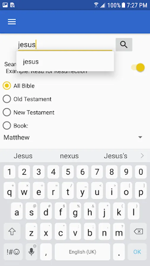 *Simply search the Bible for a phrase or keyword and the search results instantly are displayed