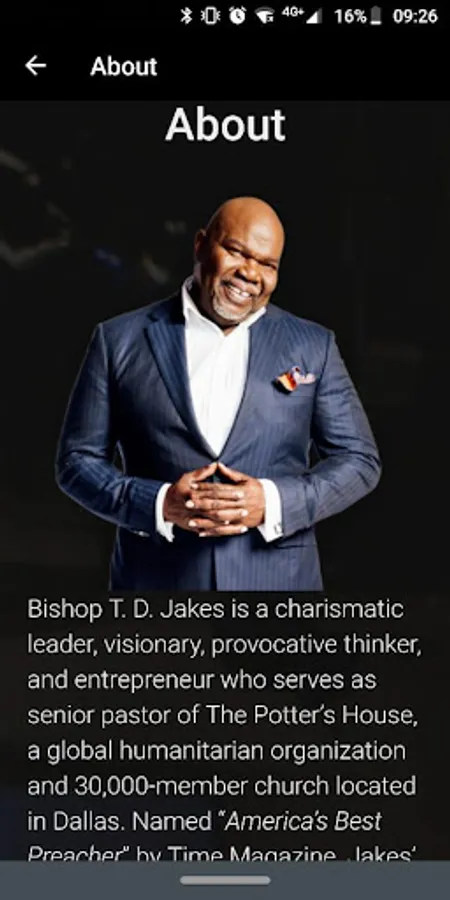 The Official app of Bishop T.D. Jakes and T.D. Jakes Ministries. Stay connected with audio, video, devotionals, podcasts, books and a variety of resources from Bishop T.D. Jakes. Watch live services from The Potter's House of Dallas, stay updated on The Potter's Touch Video Broadcasts, ManPower Conferences, Woman Thou Are Loosed Conferences, MegaFest Conferences and The International Pastors and Leadership Conferences.