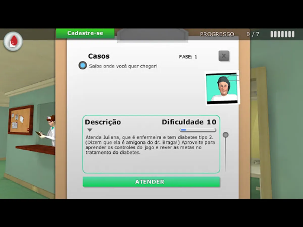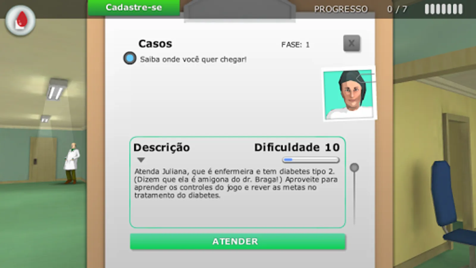 The target audience of this game are not medical experts in endocrinology and diabetes, and medical students. Other professionals or patients, can also play if they want to, but should be aware that the content and game recommendations are directed at general practitioners serving diabetic patients, especially in the context of the Unified Health System (SUS).