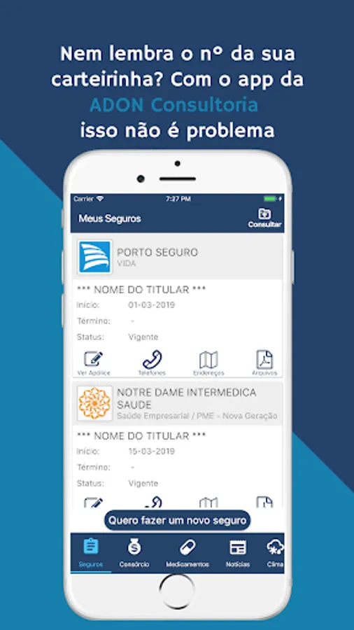 With the ADON Consultoria application you have all your insurance in the palm of your hand
