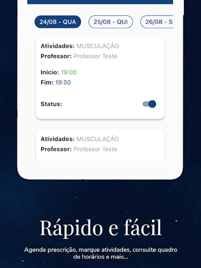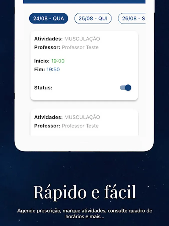 The app was created with the aim of offering even more quality, ease and convenience for everyone who wants to keep up with the practice of physical activity and experience a better training experience.